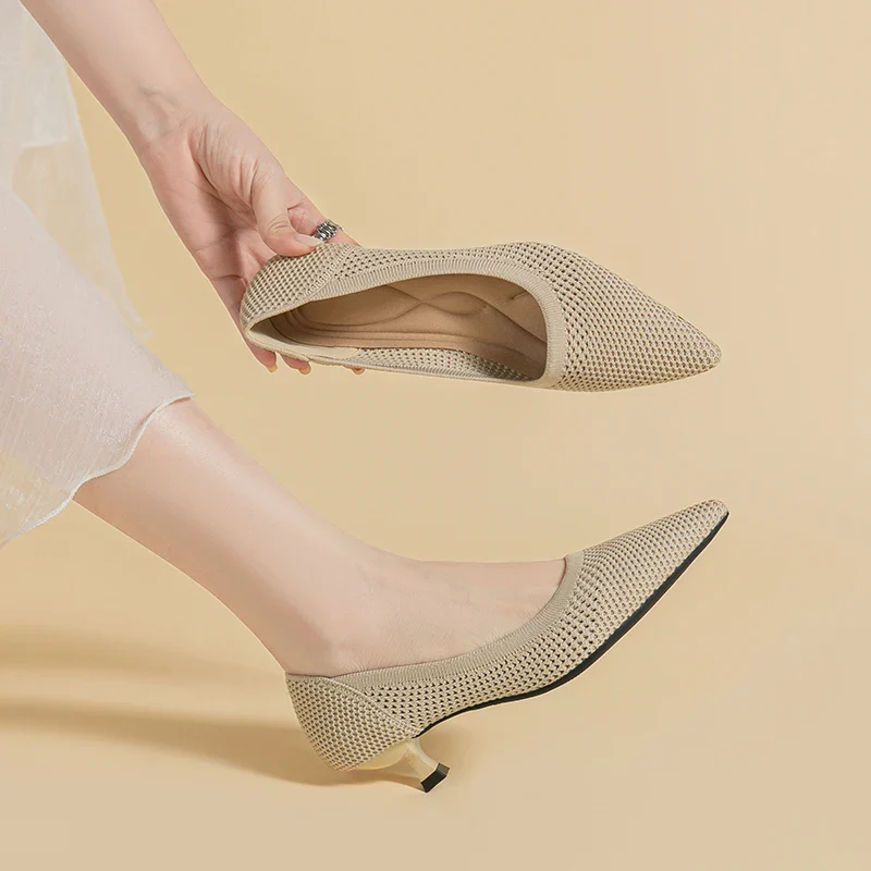 Timeless Elegance: Knit Pointed-Toe Shoes with Comfortable Kitten Heel