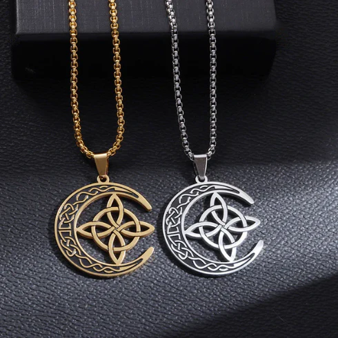 😊✨ Add a calm statement to your look with this Celtic moon pendant necklace, designed to feel meaningful, modern, and easy to wear every day. The moon shape and engraved Celtic styling give it a distinctive finish without feeling too bold.